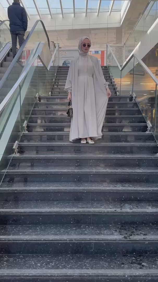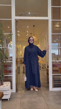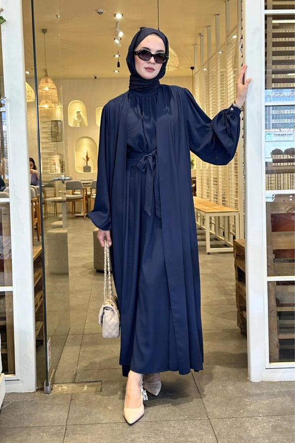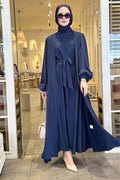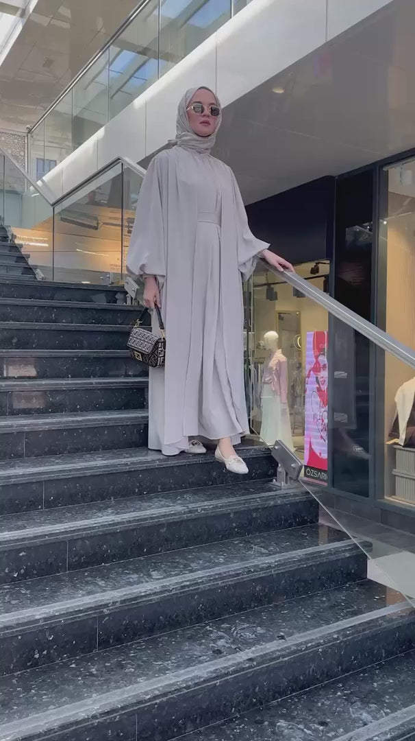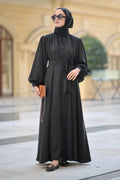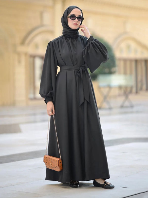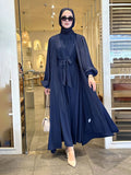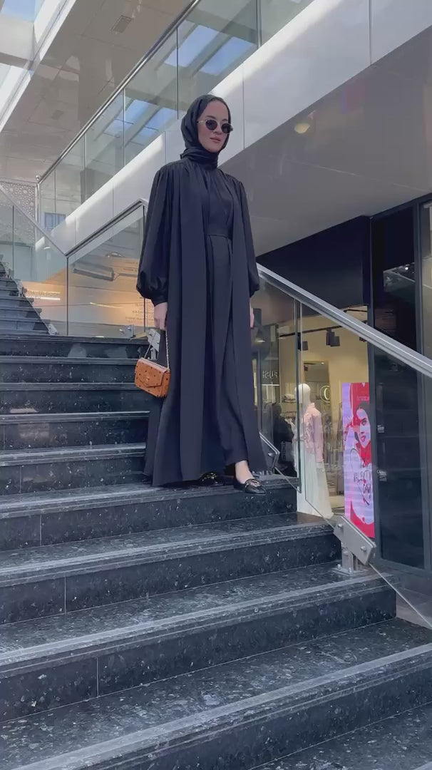 Elegant full-length abaya with voluminous balloon sleeves and a flattering waist tie. Designed with soft pleats for a graceful flow, crafted from smooth, lightweight fabric for all-day comfort.